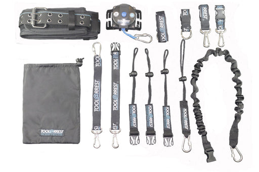 Tool ArestPolyester, padded, adjustable tool belt with auto retracting lanyard, wrist wrap lanyards, elasticated polyester webbing lanyards and tai...