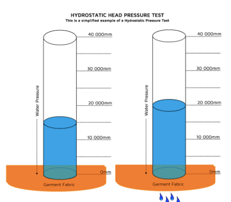 20000mm of water exerts more pressure on the fabric than a 10000mm of water, so a more accurate description of Hydrostatic Head is the measure of water pressure equivalent to 2.0m of water.