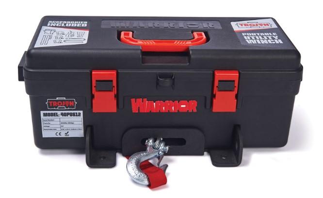 The Trojan Portable Utility Winch is a complete 12v powered winching solution in a convenient kit that features a 4,000 lb rated line pull winch on a unique powder coated winch platform, all in a compact, easy to carry composite tool box. The kit is easy to store, use, and repack.