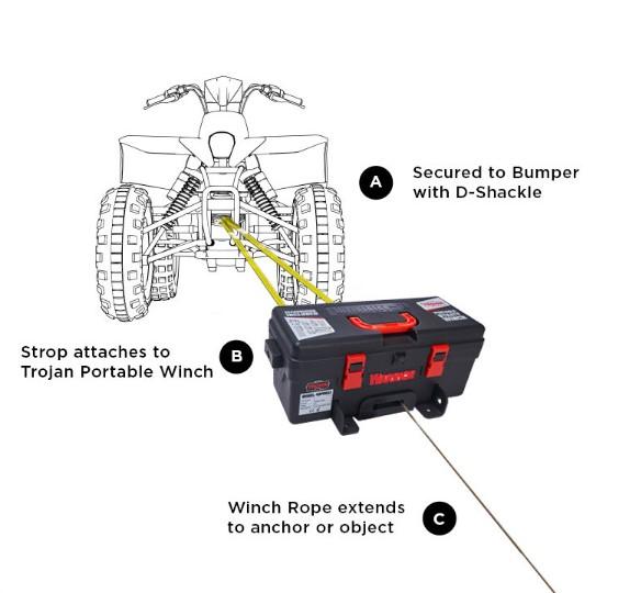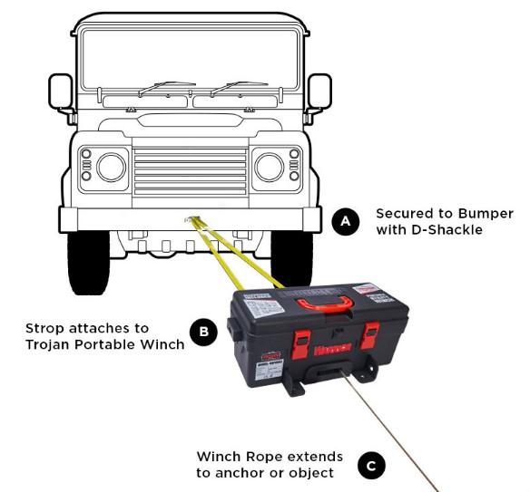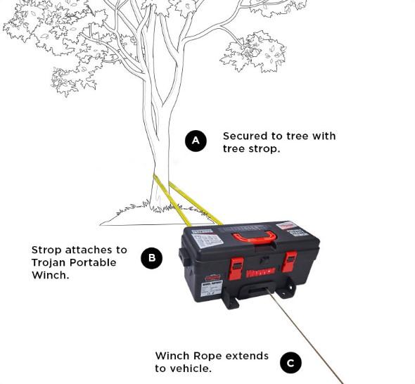 Completely portable, the Trojan requires no installation and does not require a winch mount; however, it can be permanently mounted on a trailer and be used as a utility winch if desired.